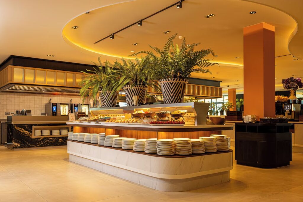 Guest reviews frequently praise the dining options, breakfast, and helpful staff.